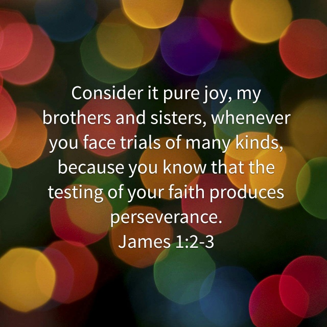 Consider it pure joy, my brothers and sisters, whenever you face trials of many kinds, because you know that the testing of your faith produces perseverance.